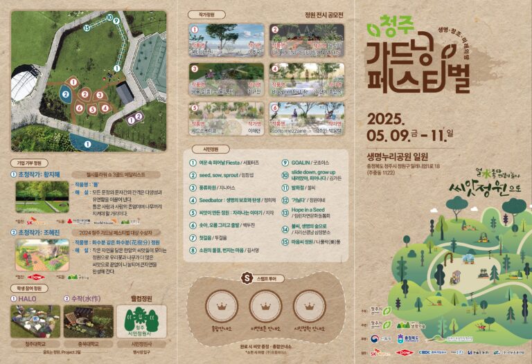 청주시가 정원문화 확산을 위해 개최하는 ‘2025 청주 가드닝 페스티벌’이 오는 9일부터 11일까지 사흘간 청원구 주중동 생명누리공원에서 진행된다. 중부권 최대 정원행사인 가드닝 페스티벌은 올해 5회째를 맞아 ‘얼수(水) 좋다! 다같이놀자! 씨앗정원으로’라는 주제로 열린다.