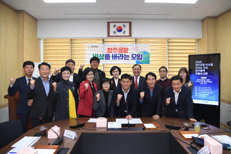 청주시의회 의원 연구단체 ‘청주공항 비상을 바라는 모임’(대표 이한국 의원)은 30일 청주시의회 중회의실에서 「청주공항을 활용한 전자상거래 물류 활성화 방안 연구」 최종보고회를 개최했다.