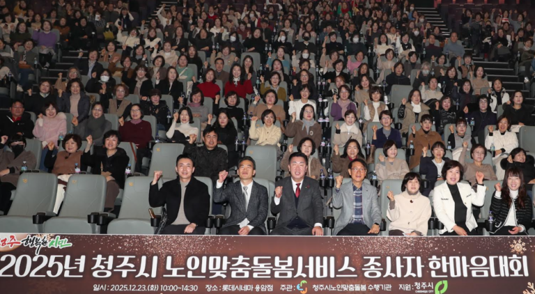 청주시는 23일 롯데시네마 용암점에서 ‘2025 청주시 노인맞춤돌봄서비스 종사자 한마음대회’를 성황리에 개최했다. 이번 행사는 청주 지역 노인맞춤돌봄서비스의 질적 향상을 도모하고, 현장에서 헌신해 온 종사자들의 노고를 격려하기 위해 마련됐다.