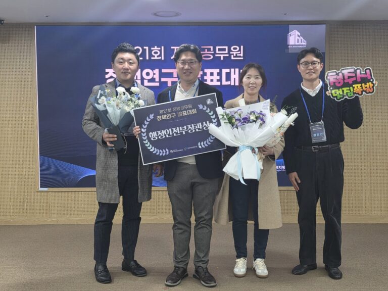 이번 대회는 전국 지방공무원을 대상으로 창의적이고 실효성 있는 정책연구 성과를 공유하고 행정 혁신을 촉진하기 위해 마련됐다. 1차 전문심사위원 평가를 통해 최종 7건의 연구가 선정됐고, 2차 국민 온라인심사와 지난 10일 지방자치인재개발원에서 열린 3차 발표대회를 통해 최종 순위가 결정됐다.