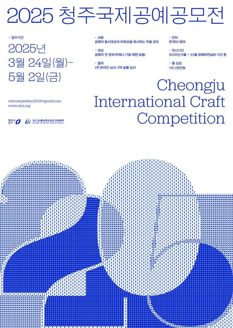 총 상금 1억 2천만원! 세계 공예계를 놀라게 할 스타 아티스트 발굴의 여정이 닻을 올렸다. 청주시와 청주공예비엔날레조직위원회(위원장 이범석 청주시장, 이하 조직위)가 ‘2025 청주국제공예공모전’ 공모 요강을 공개하고 영예의 주인공을 찾는 여정에 돌입했다.