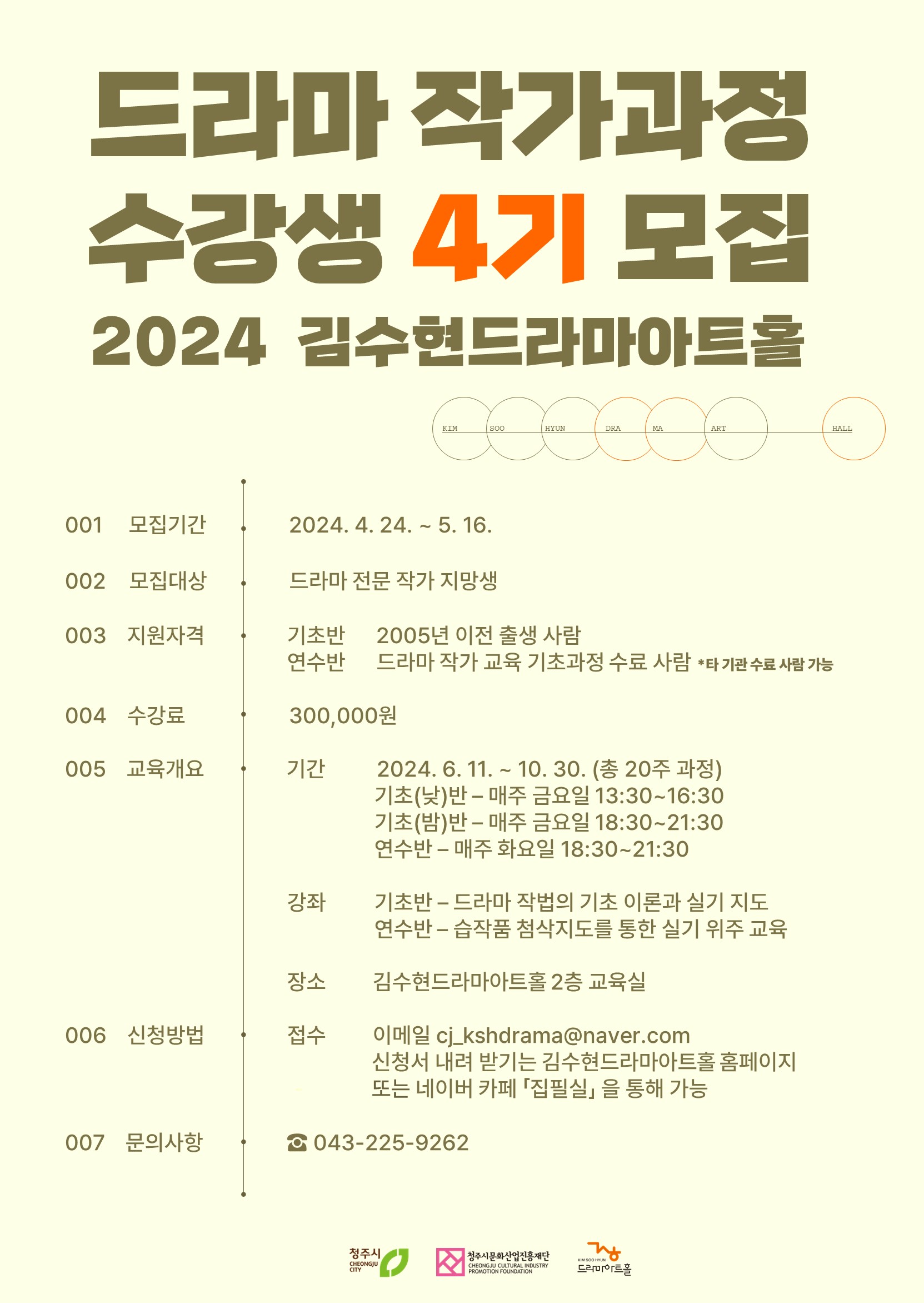 모집기간 24일(수)~5월 16일(목), 전국 대상 기초&연수반 수강생 90명 모집 대한민국 스토리 공모대전 우수상 수상자 배출… K-드라마의 새 역사 기대 2024년 상반기 화제성과 시청률 모두를 사로잡은 드라마 ‘눈물의 여왕(작가 박지은)’을 넘어설...