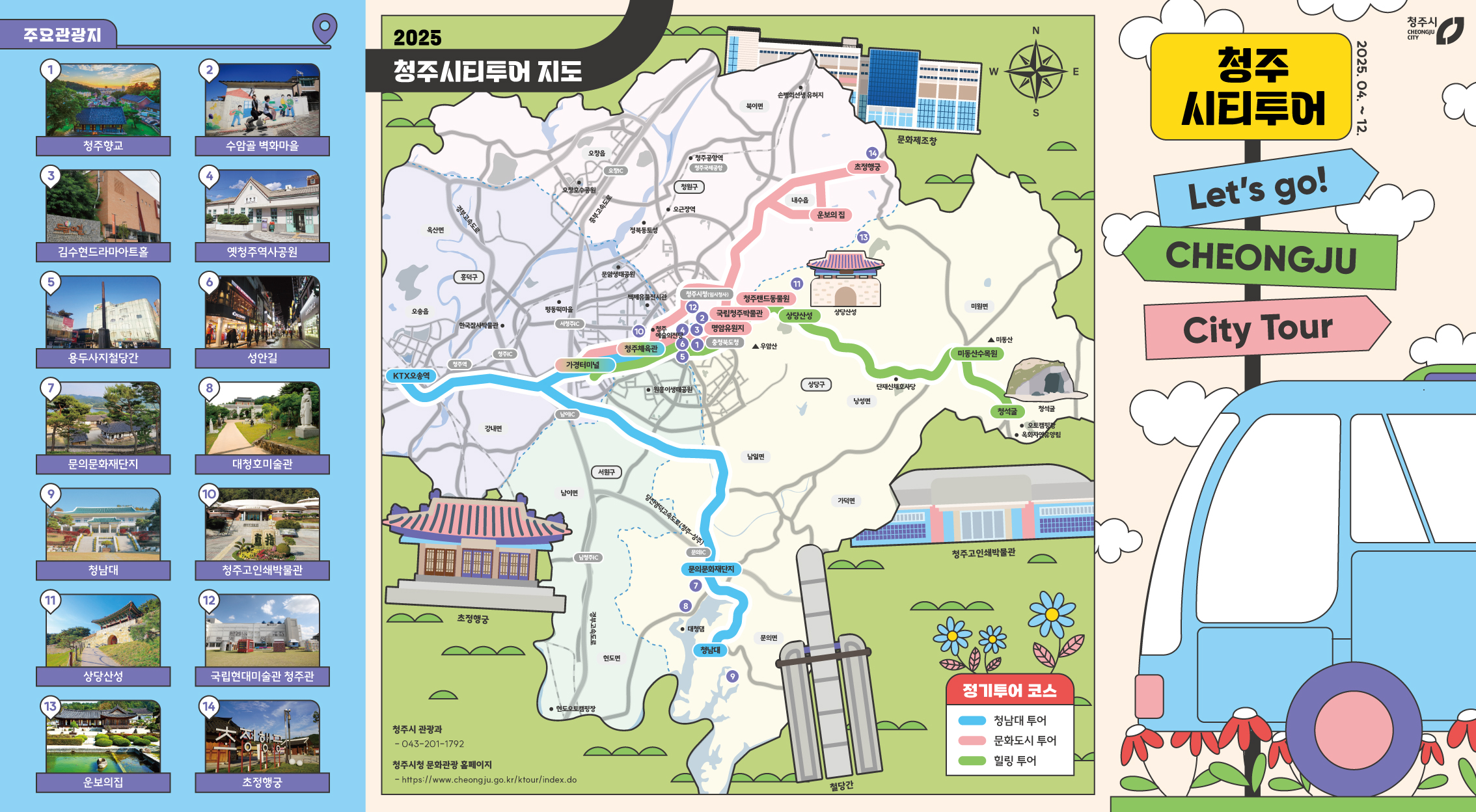 테마형 및 순환형 노선 추가… 통합문화이용권 결제도 가능 청주시는 시 대표 명소를 전문 해설사의 안내를 들으며 둘러볼 수 있는 관광 서비스 ‘청주시티투어’ 운영을 오는 12일부터 시작한다. 청주시티투어는 청남대투어, 문화도시투어, 힐링투어 등...