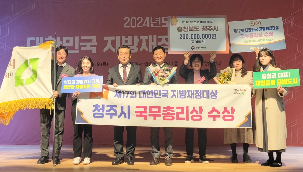 세수 감소 여건 속 효율적 재정운영 빛나며 특별교부세 2억원도 확보 청주시는 19일 정부서울청사에서 열린 ‘제17회 대한민국 지방재정대상’에서 국무총리상을 수상했다. 청주시가 지방재정대상에서 상을 받은 건 이번이 처음이다. 특히, 전체 수상대상 10개 기관...