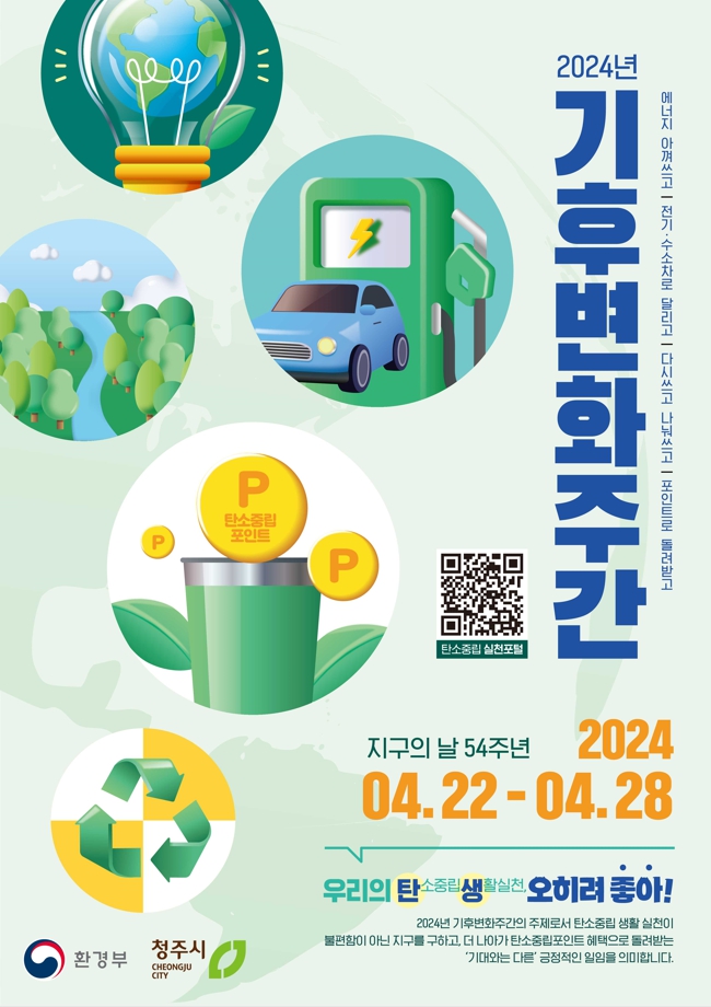 ‘지구의 날’ 맞아 온실가스 감축 위한 범시민 운동 전개 쓰레기 줍깅, 소등행사, 탄소중립 챌린지 등 다양한 행사 진행 청주시는 제54회 ‘지구의 날’을 맞아 22일부터 오는 4월 28일까지를 기후변화주간으로 운영한다고 밝혔다. 지구의...